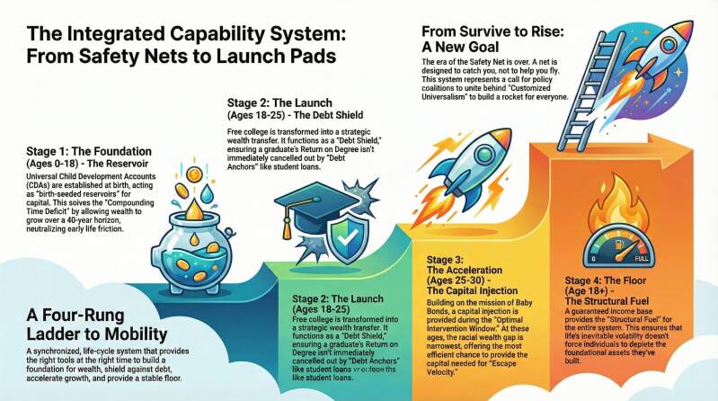 Stage 1 (Ages 0-18): The Reservoir—Universal Child Development Accounts (CDAs) to neutralize early life friction.